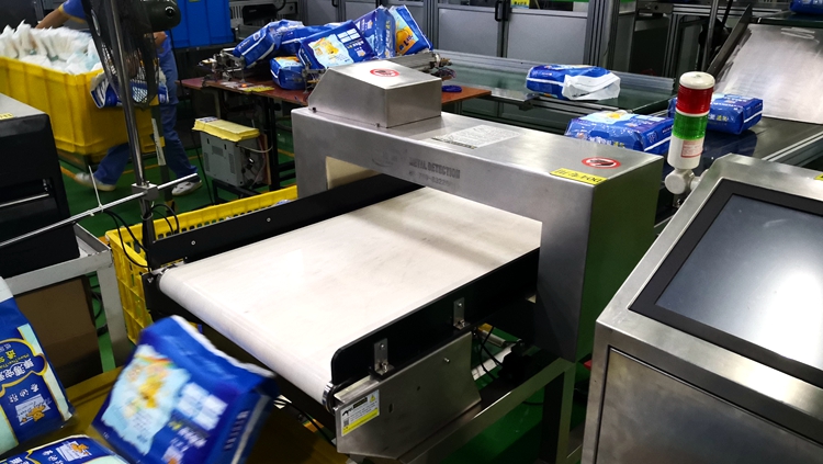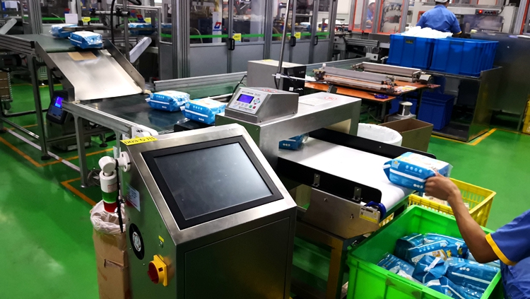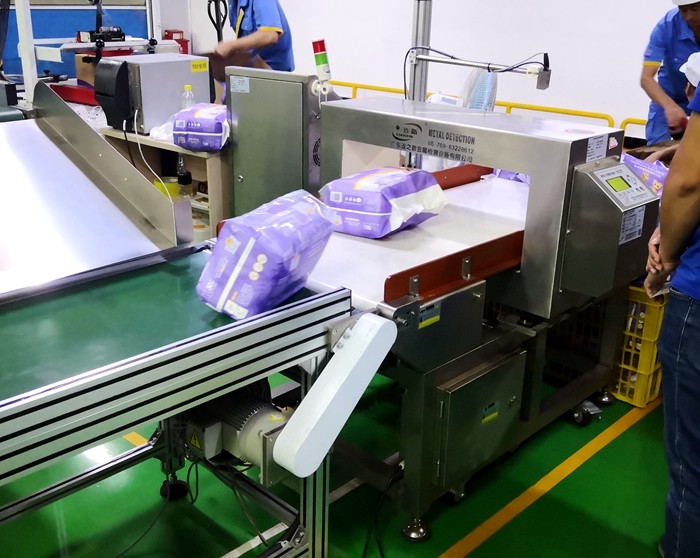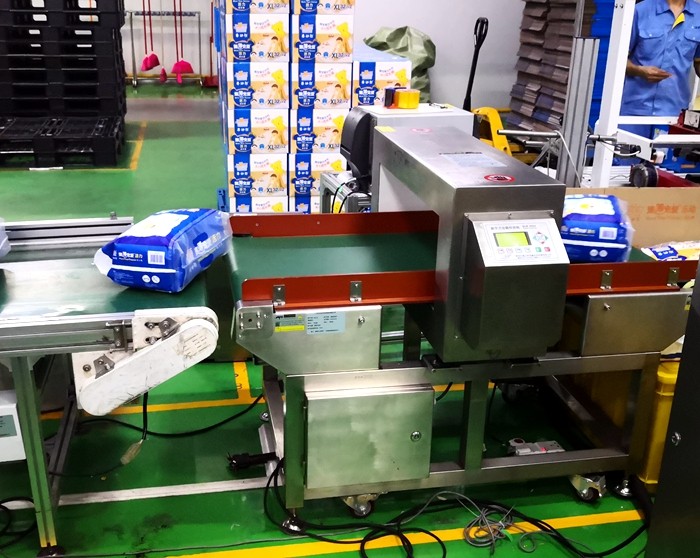 以下為漢氏衛(wèi)生用品紙尿褲生產(chǎn)線使用連之新金屬檢測(cè)機(jī)的部分現(xiàn)場(chǎng):
