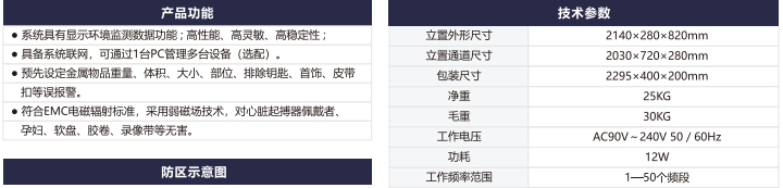 人體測溫安檢門一體機II型遠距離高精度人體測溫安檢門,集帶人體溫度檢測和金屬探測為一體的安全檢測門,門頭裝有高精度的體溫檢測探頭,探測角度可以上下移動, 能夠測量人體額頭的表面溫度,然后根據人體額頭的溫度與體溫的關系得到人體的實際體溫。檢測儀的光學組件將額頭發射和反射的能量匯集到傳感器上,通過電子組件將此信息轉化成溫度讀數并顯示在顯示面板上,當溫度讀數超過高溫報警值時,儀器會發出報警聲.報警溫度可隨意設置.具有防水、防火、防腐等特點。適用于管制刀具和槍支等危險品的安全檢查,廣泛應用于適用于機場,車站,出入境檢查站,等人員密集場所。是防止疫情擴散的有效手段。